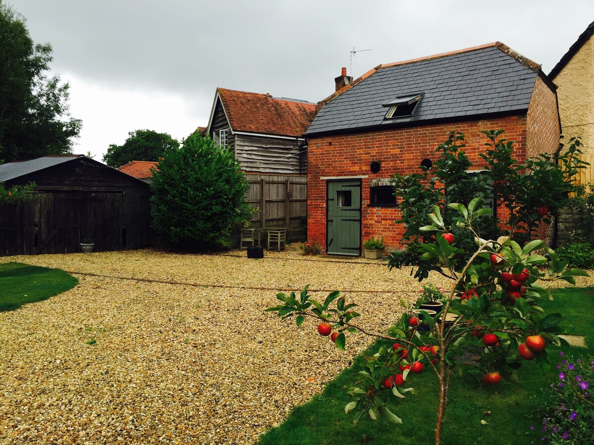 A stylish secluded, two storey, oak framed barn with tennis court, 4 miles from Winchester. Homely space with two bedrooms plus a sofa bed (upon request) and ground floor open plan living area. Super fast WiFi. The Barn adjoins the Watercress Way and stands separately in the grounds with views over open Hampshire fields. Nearest neighbour c.1 mile away but there is loads to do in the area with an abundance of country pubs, one or two within walking distance and beaches within 50 minutes