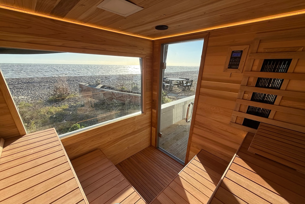 Beautiful, inspiring, and peaceful, Arthouse is a place to escape. This converted art studio in West Dorset is close to Chesil Beach and the Jurassic Coast. It is surrounded by wildflowers and features contemporary art and sculptures by artists Rouwen and Reeve. The space is complemented by mid-century modern furnishings, high ceilings, and exposed beams. All doors open to a private patio and a naturalistic garden. The Sauna, located in the gravel garden looks out onto sculptures and plants.