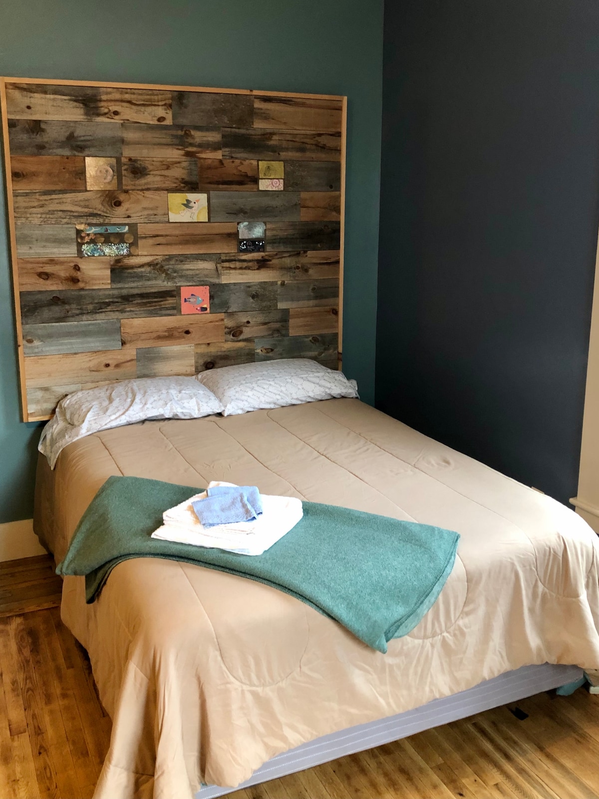 The Carter Room is a small private room at the Notch Hostel, a farmhouse-turned-hostel with communal bathrooms, kitchen, living room. The Carter Room has one full-size bed. 2nd floor, quick access to common areas. Shared bathrooms are located down the hall. Minimum 2-night stay on weekends. Dog-friendly room. We limit # of dogs on site per night. You must ask if we have space before booking with a dog. $20/dog/night. Dogs must be leashed at all times, may not be left unattended in the room.