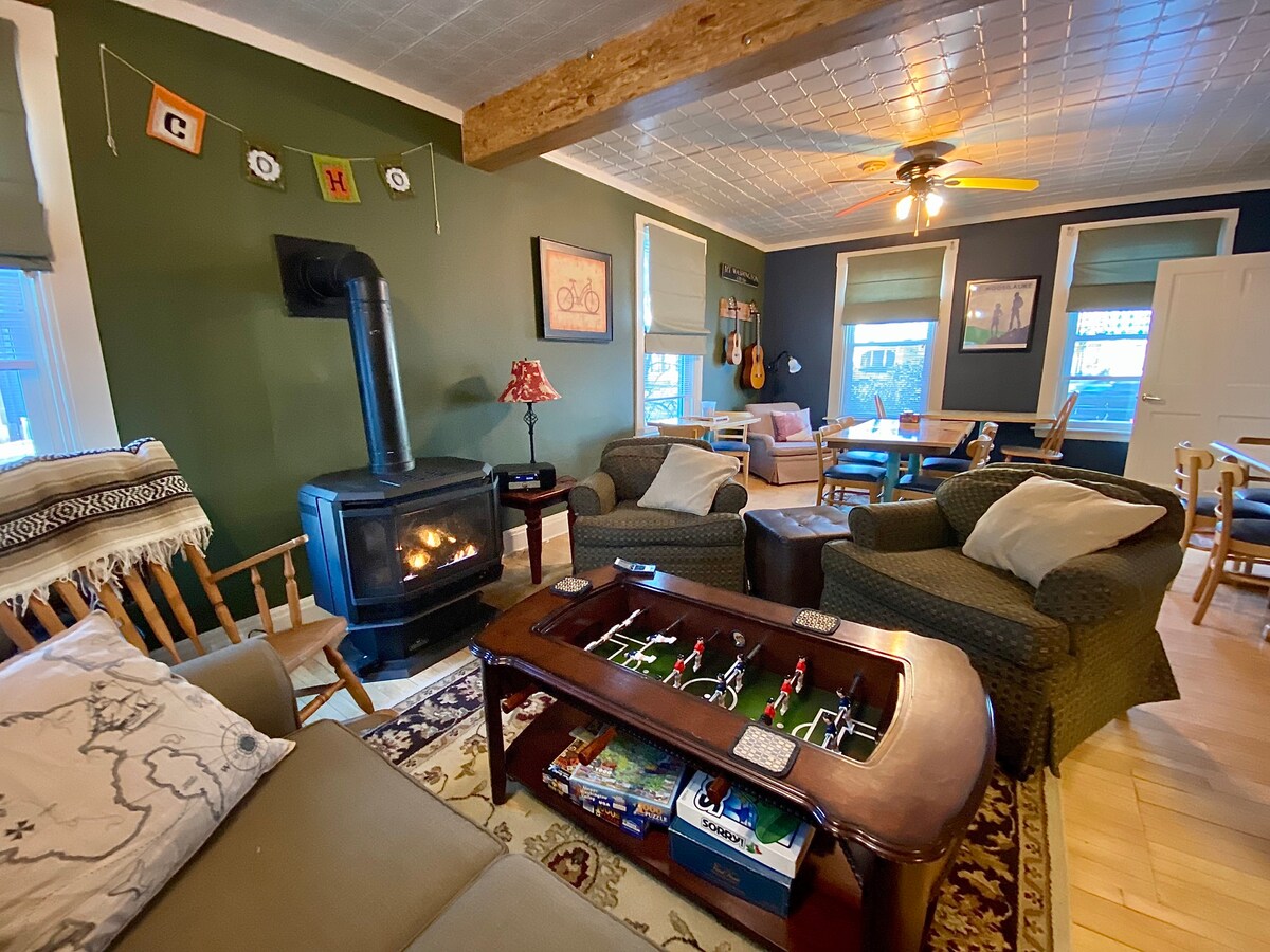 Hikers, Cyclist, Skiers, and active adults love my budget accommodations. Newly renovated room with two twin single beds. A private setting is adjoining the lower level in the private part of the in-town. The space features a shared lounge and food prep area that are only used by other guests. There is Ample free street parking in front of the building, and winter snow plowing restrictions apply. Park in the free town lot. Sorry, no pets, guns, or smoking allowed.
