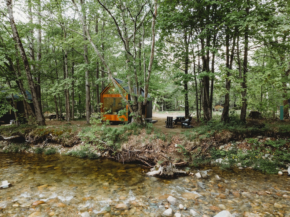 Beautiful camper with full bathroom plus a cabin by the river that sleeps 2! River access to the beautiful Baker River and mountain views. Fire pit with chair's. Has linens,towels,cookware, silverware,dishes and cooking utensils. Has a gas grill with side burner. Microwave inside. No cooking inside.Within 1/4 mile to ATV trails. Walking distance to 2 restaurants and 1 store with deli that sells coffee,bfast sandwiches, pizza.Close to several attractions.1 S/Med dog. No cats.Cabin has no heat.