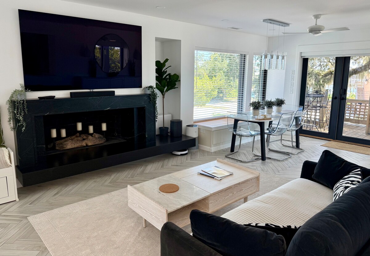 Haven is your "tree house on the ground" that takes you under an ivy archway and opens into greenery! Sitting in heart of Wilmington, only 2 miles from Downtown and 8 miles from Wrightsville Beach, Haven provides a truly unique experience, especially for couples! This home was designed for those seeking a serene, intimate getaway immersed in nature. With a clean and modern design, the interior is truly a work of art. We invite you to relax and enjoy the beauty of nature outside the glass!
