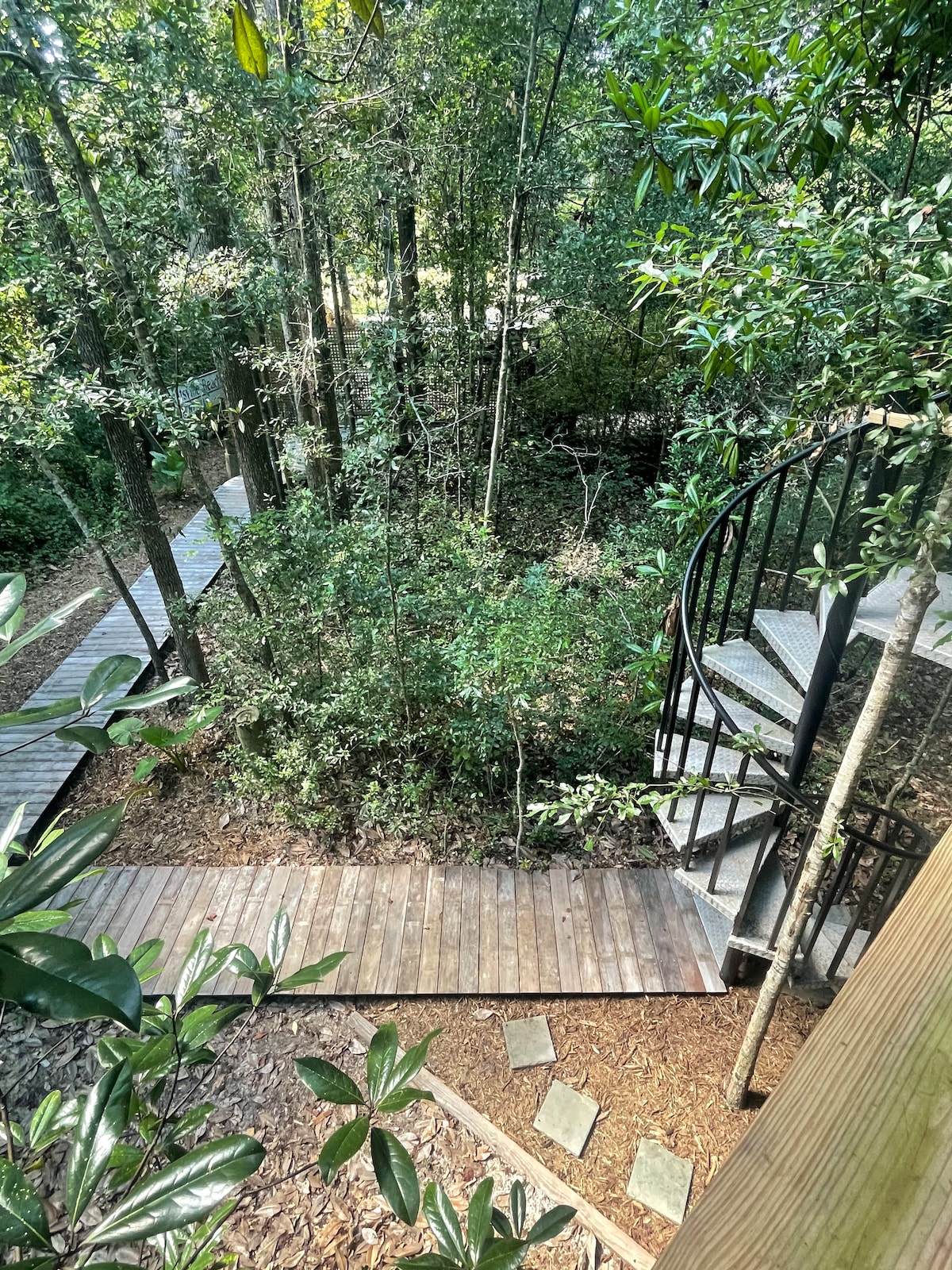 Enjoy a stay up in the trees in the Robbin's Nest Treehouse built by Charles Robbins. On a 4 acre wooded property, 10 minutes to Wrightsville Beach,1 minute from Intracoastal Waterway with paddle board, kayak and power boat rentals providing easy access to our beautiful North Carolina coast. A unique hand crafted treehouse inspired by Treehouse Masters. The interior features beautiful wood to bring nature inside. Outdoor porch and deck are perfect for morning coffee or evening glass of wine.