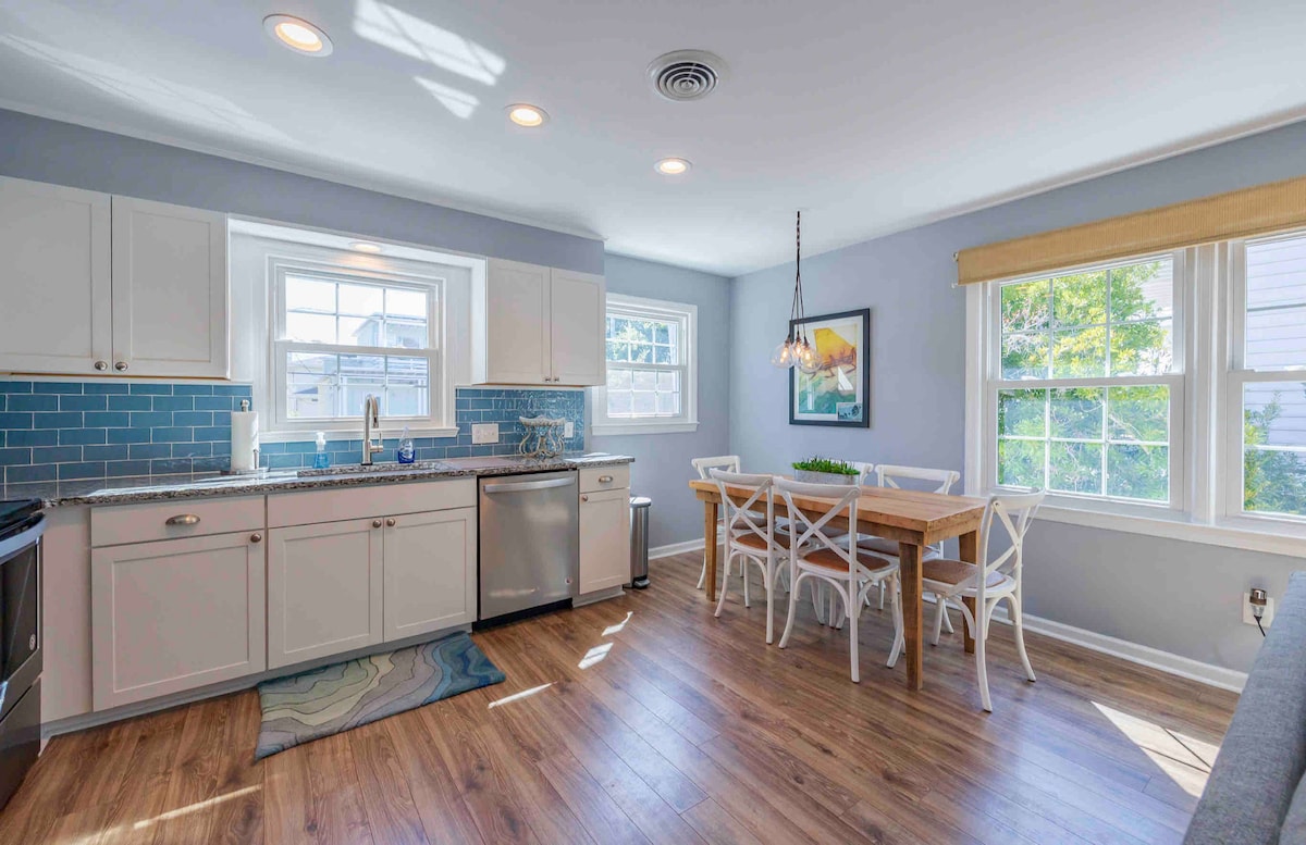 Contemporary, completely renovated, 2 bedroom, 1 bath guest house steps away from the intracoastal waterway and the beach. Fully equipped kitchen, washer/dryer, full bathroom, outdoor shower, wifi tv with netflix, Hulu and cable.Sonos sound system + hotel grade mattresses. Master bedroom with king bed and one bedroom with two double beds. Freshly washed linens provided. Walking distance to downtown Wrightsville beach and the pier. Parking available for 2 vehicles. PLEASE NO PETS ALLOWED ON SITE.