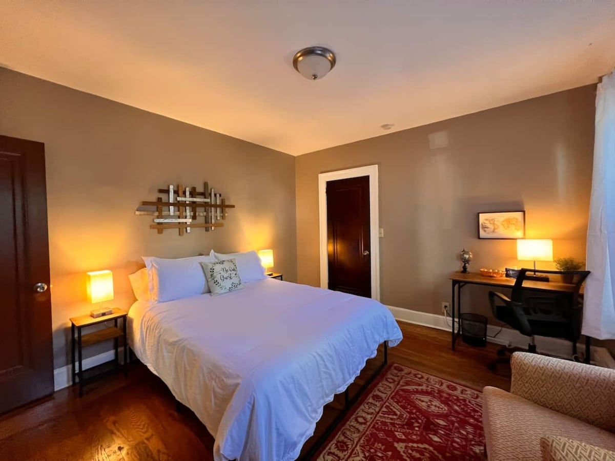Large pristine 2 bedroom, perfect location, set up specifically for the luxury traveler. Central a/c and heat. Cozy living room with extra large, sofa, well-stocked kitchen, huge dining table, comfortable and very quiet bedrooms with black out curtains, memory foam mattresses (Tuft & Needle), and super soft sheets bamboo cooling sheets. Centrally located house with all the amenities of home. Safe and quiet, cute walk-able area!