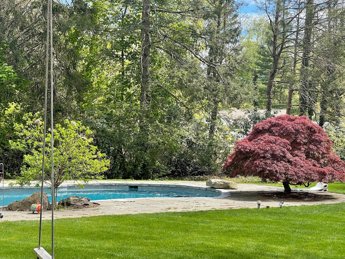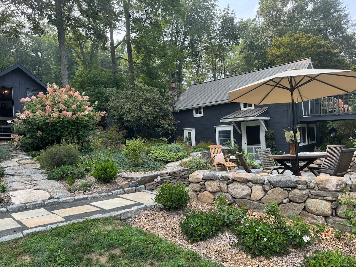 Recently renovated private guest house with access to swimming pool offers sleeping for eleven in four bedrooms. Tastefully decorated with all amenities. Close to Merritt Parkway and train to Manhattan. This is a natural refuge on eleven very private acres. Large private terrace faces westerly for amazing sunsets and offers a "Plein Air" environment for alfresco meals, cocktails and relaxation. An attached vegetable and flower garden with fountain offer a quiet space to relax and reflect.
