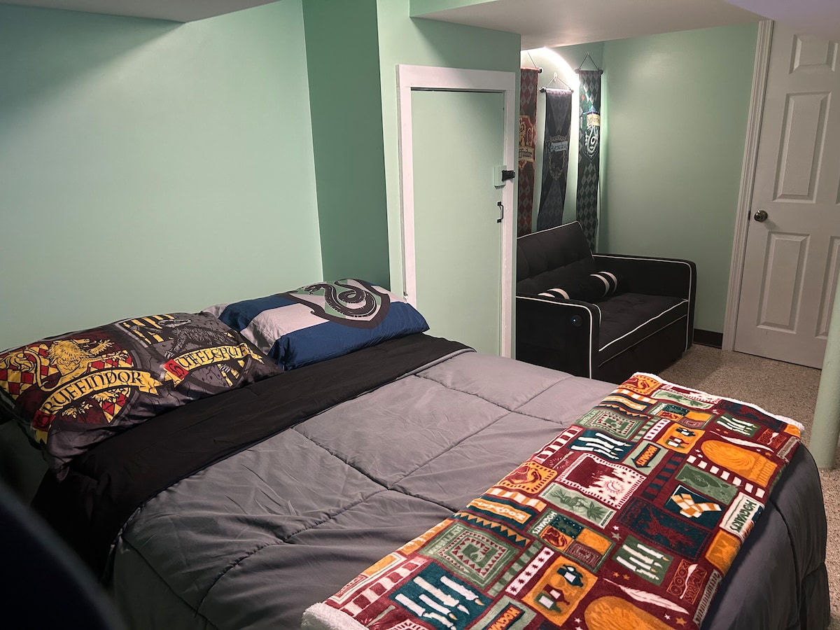 Kick back and relax in this calm, stylish space. Come enjoy this peaceful setting located on the second floor with a private entrance. The home is tucked away on a dead-end street. You can escape to this lovely spot where the woods are in your backyard and the beautiful sunrise is out your bedroom window! If it's wineries you love Hawk Ridge Winerery 2miles away. The antique trail begins the next town over. Or maybe skiing is on your list just head north under 20 miles and you can be there.