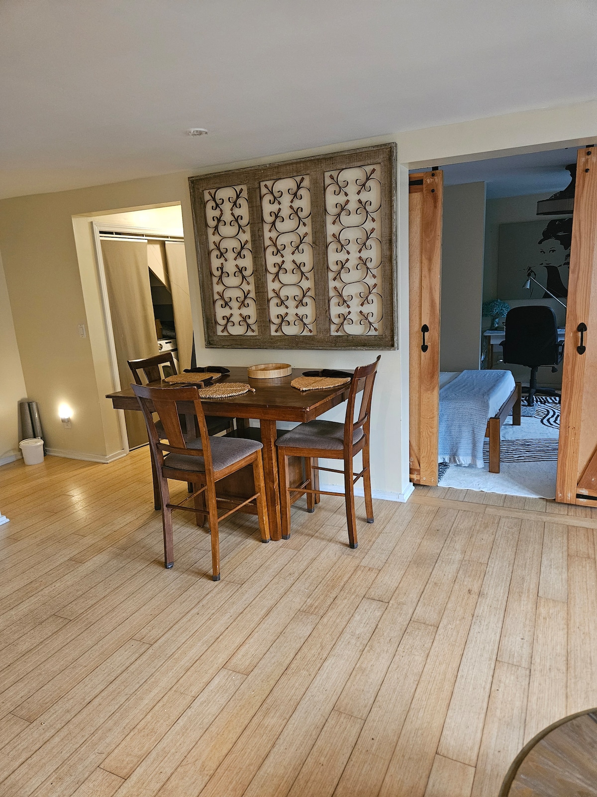Private one bedroom apartment with modern decor offers everything you need for a short or long term stay. Space includes a full kitchen separate from studio area, & washer + dryer. Studio offers a Queen Sized bed, pull-out bed, workspace, 70 inch Roku Smart TV & hand painted artwork. The Location Less than two miles from Merritt Parkway, near I-95 & East Norwalk train station. One mile away from large shopping center and less than half a mile away from local convenience center.