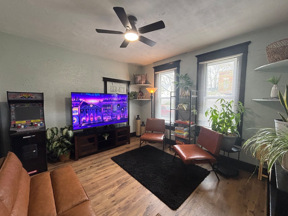 We are minutes from the DT Lutheran hospital. Blocks away from downtown, library, restaurants, art studios, shopping, bars, ballpark, Grand Wayne center and much more. The guest house is well equipped including a dishwasher, dual electric range, larger air fryer, stackable washer and dryer, central AC, ceiling fan, queen bed, couch converts to full, 2 smart TVs, free wifi, smart locks, off street parking with 110v or 220v (Nema 14-50) EV charging Ports. We do live on property in the main house.