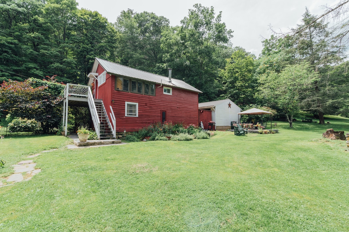 Winter charm! Serene escape for a single or couple getaway. Charm abounds. Excellent restaurant walking distance and coffee cafe/bakery on corner. Rustic loft in historic, restored barn on nature preserve Waterfall through yard. Parks, Energy vortex. Private building w/deck, fire pit. Fantastic library. Modern amenities. From garden to wooded glen. Excellent restaurants close. Hike, bike, fish. Antiques/wineries. Holidays 2 night min 90 min NY/Phil. creatives honeymoon.