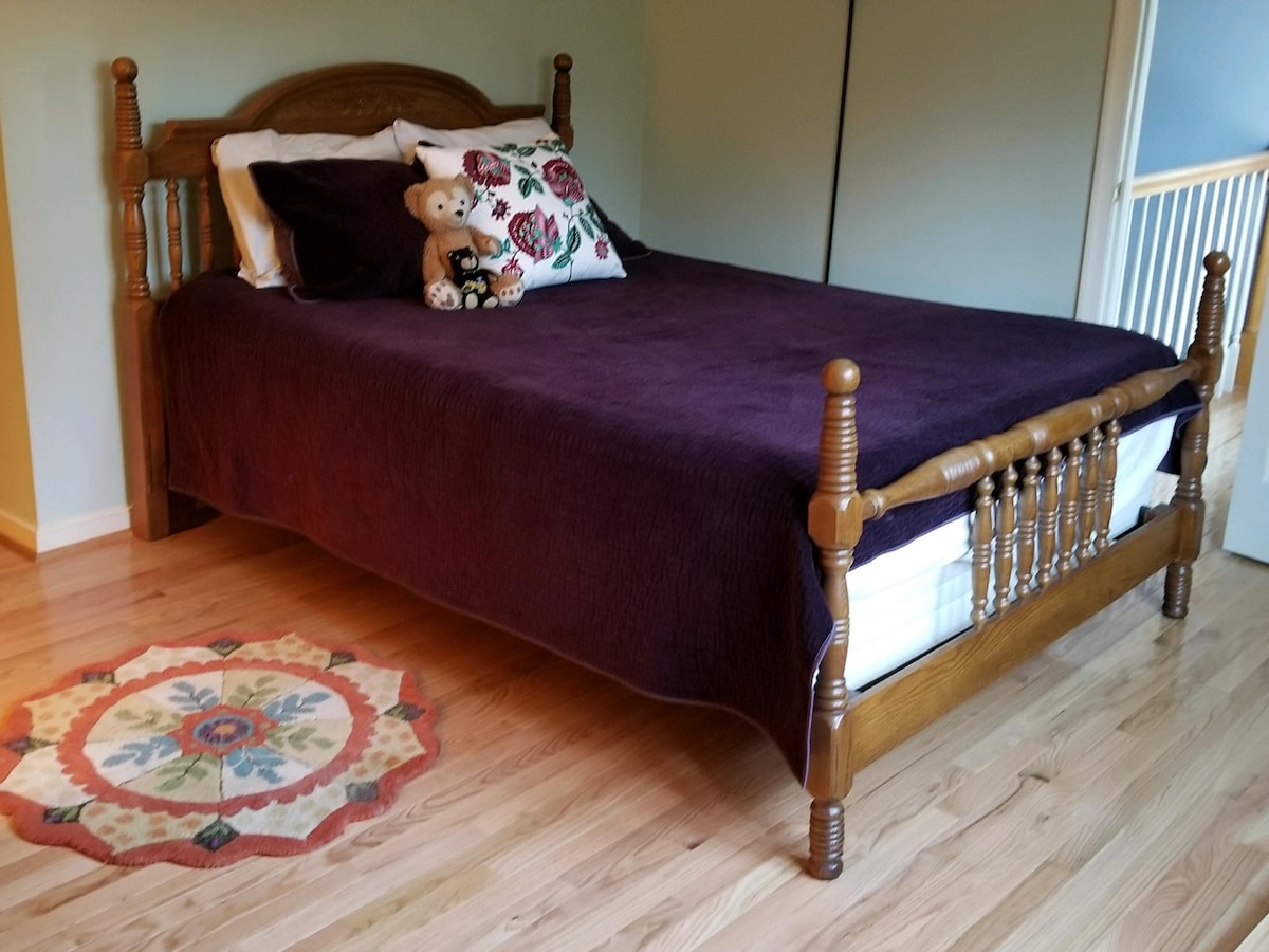 Want a quiet apt. getaway in the woods? Views from every room overlooking fields with woods, deer and wildlife, 2 day min. stay, 3 day holidays, or extended stays permitted if available. A luxurious 2 BR apt., located upstairs in a unique barn, loaded with amenities nestled 1/2 mile down a gravel drive, with scenic woods and wildlife. This accommodation sleeps up to 4 people + child Bedrooms have ceiling fans, new king bed in bedroom furnished in antiques Washer dryer * Low cleaning fee