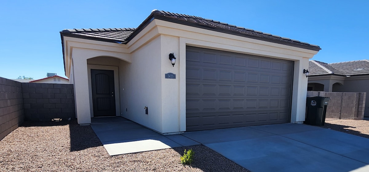NEW!!! PET FRIENDLY!! This 1 bedroom 1 bath home sleeps 4 and sits in a perfect location just minutes from the regional medical center, I40, Route 66 and Historic Downtown Kingman. The home is also very close to many popular restaurants, local golf course and even Starbucks. What separates this home from others in the area is that you have your own yard, dog run, washer and dryer and all eating and drinking utensils along with a full size fridge. gas outdoor BBQ, Smart TV etc.