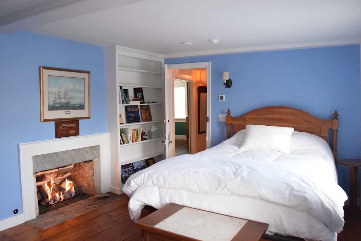 House of 1833 Bed and Breakfast is a Greek REvival mansion & national landmark featuring English gardens, season full size swimming pool, and a full New England country-gourmet breakfast. The Ivy room is our English Garden guest room with elaborate Victorian queen size bed, small flat panel TV, fireplace, and full private bath. Add a third person on a fold-away bed for an additional $50./person/night.