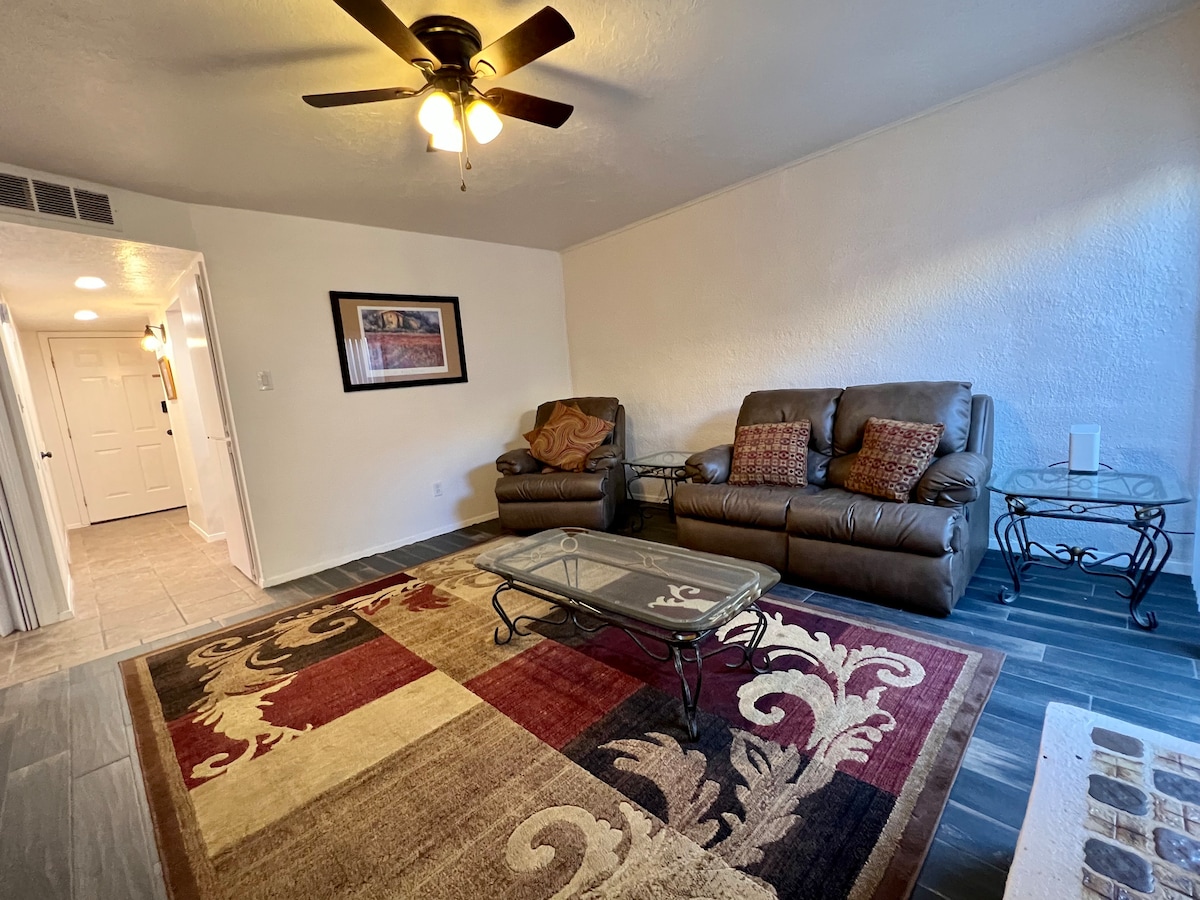 Come unwind and rejuvenate at our zen sanctuary, where relaxation, simplicity, and comfort are key to a great stay! Pamper yourself in our spa like walk-in rain showers! Enjoy our newly remodeled contemporary interiors with natural terrecota concrete throughout. Private patio enjoy grilling with friends and family or spend a romantic evening sitting around the fire table or in the Hot tub! NMSU 5mi, White Sands 45mi, Less than 1 min access to Hwy-70, I-10,I-25 Old Mesilla 5mi, sec to Hospital