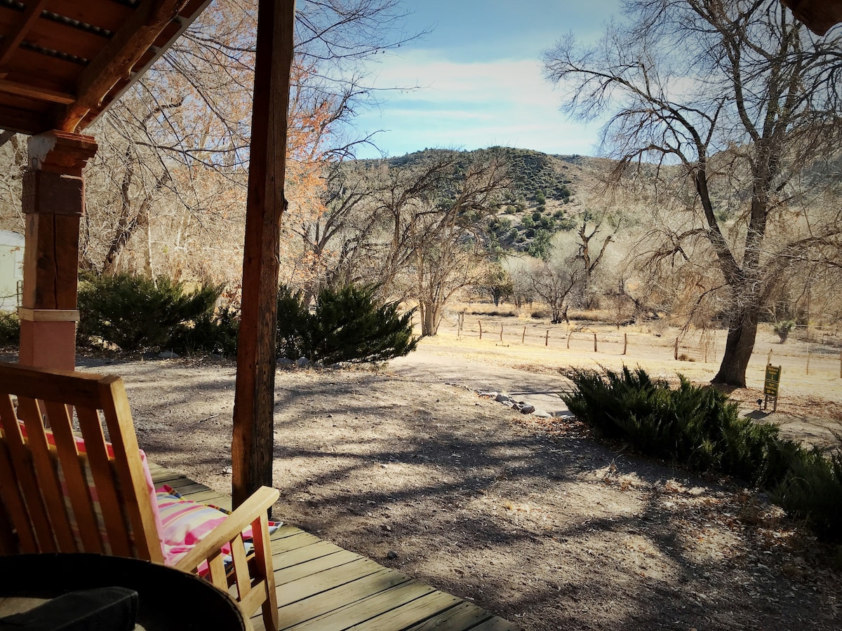 The Pinon studio log vacation cabin rental is situated along Bear Creek Canyon at an elevation of 4800 feet. Our southwestern New Mexico location, with its near perfect weather year round is hard to beat! Average 280+ days of sunshine, stunning blue skies and 7"-13" of rain annually provide milder summers and winter weather folks from up north dream about while shoveling snow! The Pinon Log Cabin is our version of a comfortably furnished, rustic studio-type vacation rental perfect for a single or a familiar two. With approximately 430 square feet, this little cabin is big on ease. Unexpected beauty is hidden along the valley where Bear Creek meanders. Sitting at the end of a well maintained 4 mile dirt road, you will find our 360 acres in southwest New Mexico surrounded by ancient cottonwood, Pinon and sycamore trees. (GPS: 32.969224, -108.525218). This "end of the road" cabin along with our 4 other rustic properties, will satisfy your need to disconnect, escape the cold, the crowds, the stress. The quaint Village of Gila is a 10 minute drive away and offers a medical clinic, library, post office, art gallery and is truly the "Gateway to the Gila Forest". Still convenient to major shopping in Silver City, NM and an easy 35 minute drive, you'll enjoy browsing a variety of shops, antique stores and boho, silver, turquoise homemade jewelry bodegas. You'll find a long list of of things to do and see: day or evening fine dining or fast food; multi-cultural cuisine or eclectic funk, Western New Mexico University, our local Farmers Market, theatre, an annual Fiesta, Little Toad Creek Brewery & Restaurant, art galleries, or antique stores (check out Manzanita Ridge)!! Day trips to big cities such as Tucson AZ, Las Cruces NM, and El Paso TX are easily made. Fully furnished, perhaps our personal favorite, the kitchen features custom-designed Italian stone counter tops, a 4-burner stove top, microwave, two apartment-sized refrigerators, coffee maker, toaster, microwave, toaster oven, crock pot/slow cooker, blender, dishes, flatware, cooking pots, utensils and a dinning bar with stools where you can enjoy breakfast, lunch or dinner. For your convenience, the pantry is supplied with complimentary items such as gourmet spices, condiments, small amounts of sugar, coffee creamer, tea, cooking oil and spray, pasta, rice, microwave popcorn, canned meat chunks, foil. A few miles from your cabin you'll find our local convenience store/gas station stocked with fresh dairy products, eggs, ice cream, bread, canned fruits and vegetables, frozen meat, lunch meat, soda, snacks - open 7 days a week. The hotel quality queen bed beckons you to sleep in just a little longer than usual, all snuggled-up in the luxurious Egyptian cotton linens. The radiant, in-floor heating will keep your toes nice and warm on chilly mornings and, if you are here during the warmer months, you can count on the Air Conditioner to keep you cool! The living area in this quaint little gem features a comfortable Italian leather love seat with matching easy chair with plenty of throw pillows. There is a chest of drawers and vintage cedar armoire. This cabin also boasts a full bath, with shower and tub, and for the evenings when the star-studded sky isn’t quite enough entertainment, there is also a TV/DVD library. Sorry -- no network, cable or satellite tv stations are available. Wi-fi for steaming video or music using your personal account. Unlimited long distance calling within the Continental U.S. If your idea of relaxation is being exhausted from exploring Bear Creek Canyon, enjoying bird watching from your covered deck, hiking up Double E Ranch Trail or just soaking up the peaceful quiet, you’ll want to stay at the Pinon Log Cabin. From your tin-roof covered deck, you can enjoy views looking toward Bear Creek and its giant cottonwood and sycamore trees. Roadrunners, jackrabbits, hawks, deer, wild turkey or possibly javelinas all call this canyon their home. Take in some of the most stunning star-filled night skies ever imagined. If you sleep better without the glow of city lights and prefer the night sounds of nature to the hum of humanity, then you are going to love the Pinon Log Cabin. As with the other New Mexico Cabin Rentals properties, the Pinon Log Cabin provides you the opportunity to experience a tiny taste of life on a southwestern New Mexico ranch, explore a diverse ecological region, and encounter the recent and ancient past up close. Enjoy the easy pace of a hot summer day on the ranch as you wander the compound and acquaint yourself with the horses. Look for any one of the hundreds of breeds of birds who call the Gila High Desert home as you challenge the summit of Turtle Rock or explore the canyons of the Double E Ranch. Trace the path of the Mimbres Indians who lived along Bear Creek and the Gila River 1300 years ago. Uncover their history through pottery pieces, ancient tools, pictographs and remnants of stone dwellings which can still be readily found along Bear Creek. Introduce yourself to the more recent legendary characters who roamed the hills, mountains and towns in this area, including Billy the Kid, Geronimo, and Ben Lily. Fill your days and evenings with whatever pleases you because out here, that’s just about the only person you’ll have to answer to. We're proud to be an Airbnb Super Host!