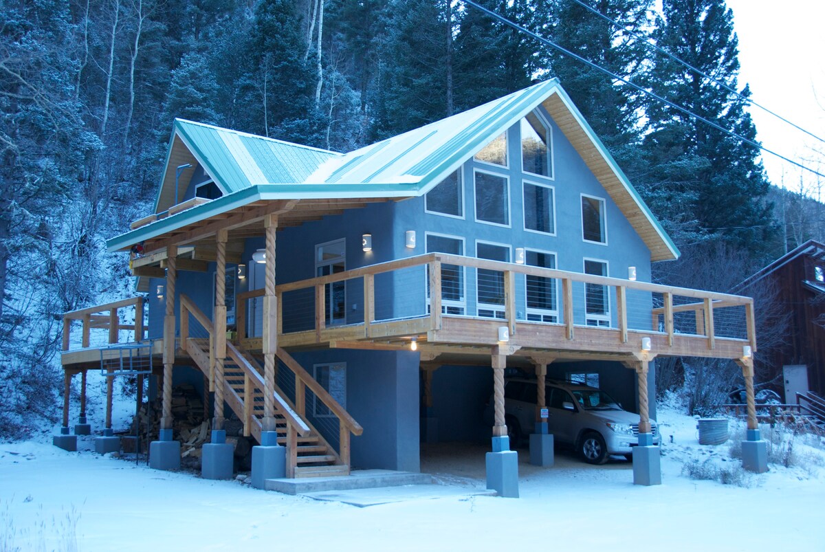 Extraordinary views of Seirra Blanca from this updated 4 bedroom, 2 and 1/2 bathroom, hillside Chalet. Rustic modern asthetic with updated fixtures and amminities. Super fast WiFi, Cozy Fireplace, and large covered deck with outside bar area, grill, firepit and table. A fully equipped kitchen, has pots & pans, dishes, silverware, glasses, slow cooker, toaster, wafflemaker and more. Deer, elk and other wildlife frequent the property, easily spotted from the covered deck. Center of town location.