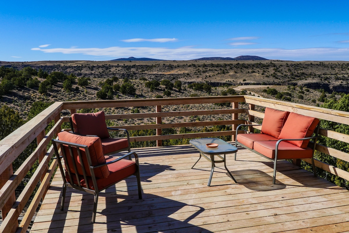 Nestled at the base of a majestic mountain, Casa del Rio offers sweeping views of the mesa and river, with the Jemez River flowing right through the property. Modern amenities meet natural beauty—enjoy sunsets from the deck, s’mores by the riverside firepit, and drift off to the soothing sounds of the water. Just five minutes from hot springs and scenic hikes, and only an hour from Santa Fe or Albuquerque, it’s the perfect place to relax, explore, and make unforgettable memories.