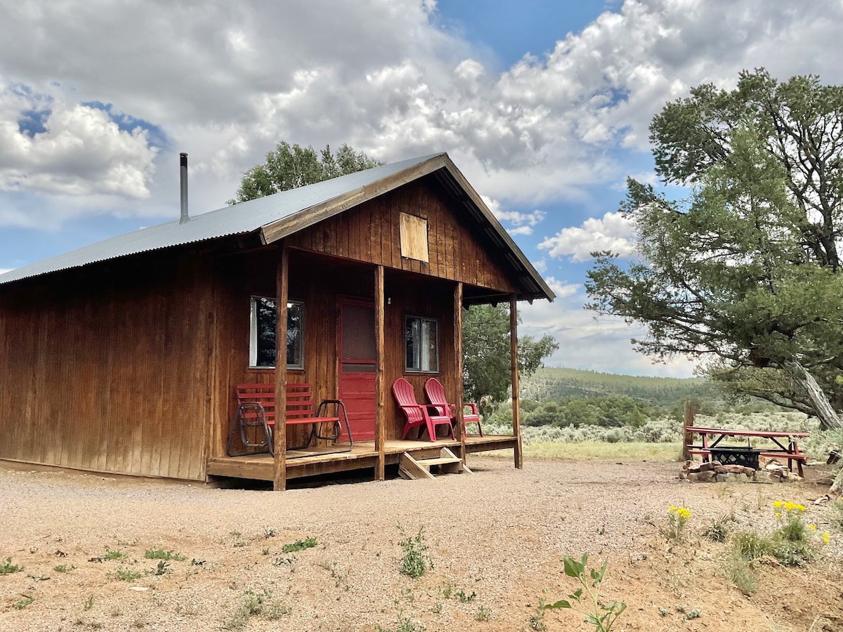 Welcome to our lovely small 2 story A frame cabin. The famous San Juan River is steps away ready for fishing. Just minutes away from the Navajo Dam Lake Marina. The house is clean, fully equipped and ready for your stay! Cabin comfortably sleeps 3 guests, more are welcome! Two lawns available for camping. Large area for parking. One 30 and 50 volt amp plug in for campers. The panoramic nature view and relaxing visit will make you want to come back again guaranteed! It is the perfect getaway!