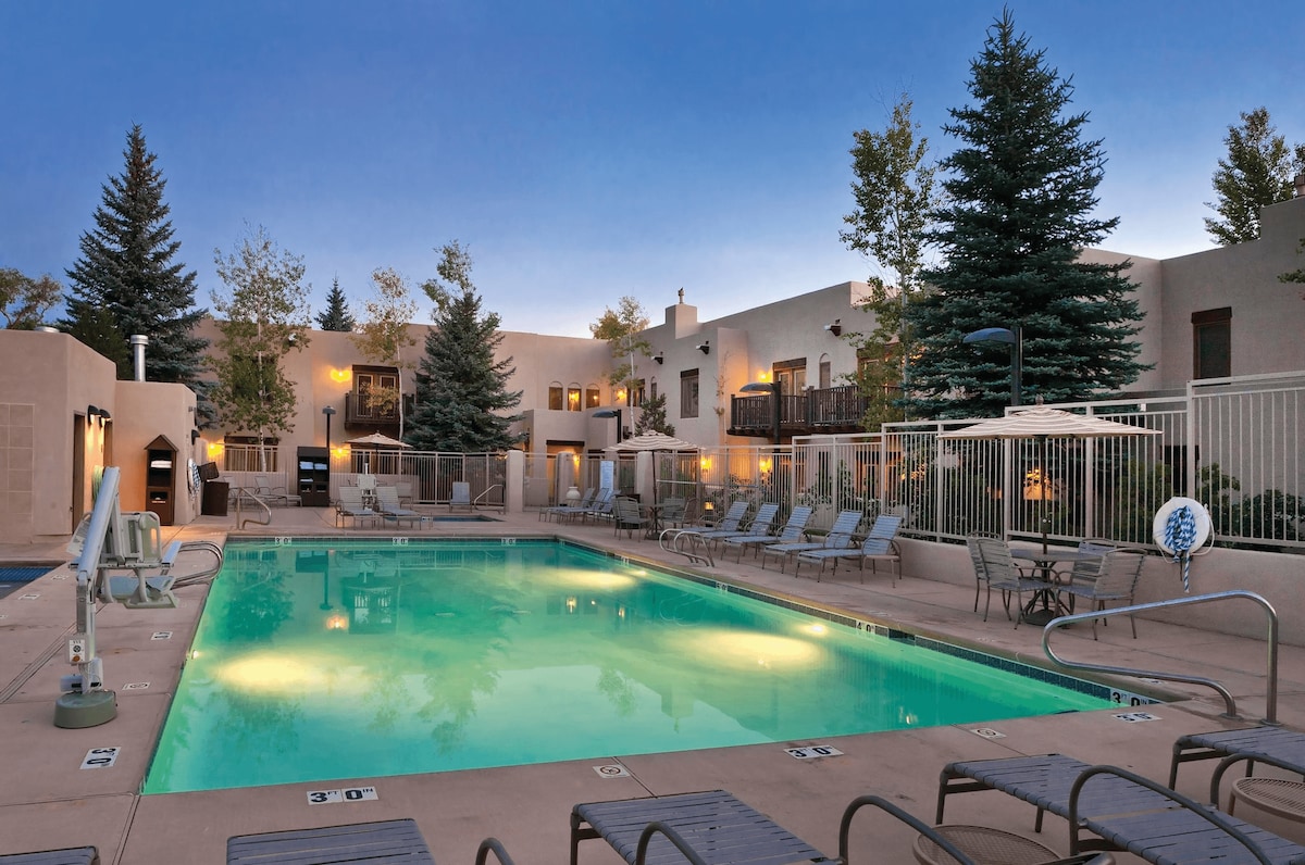 Nestled in the heart of Santa Fe, New Mexico our 1BDR unit allows you to enjoy rich cultural heritage & a vibrant art scene of this historic destination. Indulge in relaxation & comfort of our stunning villa. Our unit boasts of spacious accommodations, modern amenities, & breathtaking views. Whether you're seeking a romantic getaway, a family vacation, or a solo retreat, our resort 1BDR offers something for everyone. 1 King bed, 1 Sleeper Sofa, Sleeps 2-4 guests.