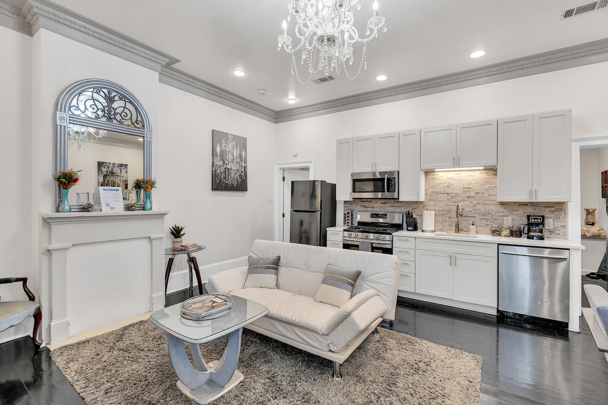 Have an authentic New Orleans experience in an 1852 building remodeled with all the comforts. The 2-BD / 2-BA condo features high ceilings and original hardwood floors, accented by modern amenities making spaces like the open-plan living room relaxing and inviting. The condo comes equipped with a full chef's kitchen as well as a dining table. Enjoy the tranquil beauty of our courtyard after a long day of exploring.