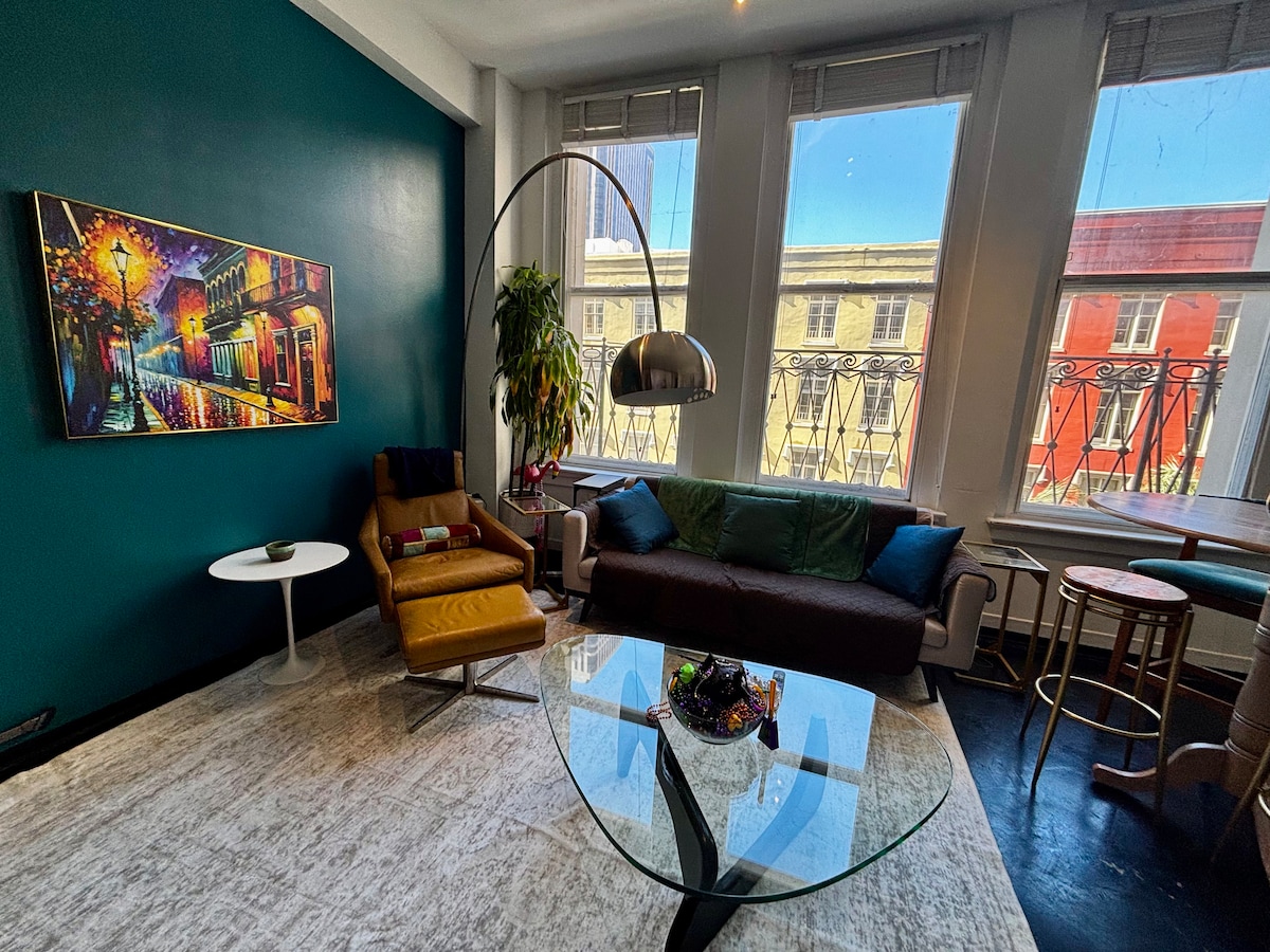 The Apartment is located in the picturesque Marigny Triangle, 2 blocks from French Quarter, 1 block from Frenchmen St & 2 blocks from the streetcar. The building was recently converted from a warehouse that was used to make Mardi Gras floats, into modern Condos by its Architect owners. It has parking (see House Rules for requirements), private balcony, community courtyard, security systems w/ exterior cameras, keypad locks, 10 ft ceilings & variety of coffee makers. Apt. in compliance w/ City.