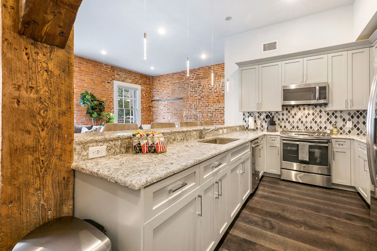 ⭑ Welcome to The Armstrong ⭑ This stylish two-bedroom, two-bathroom suite features exposed brick, original wooden beams, and a spacious private outdoor area—blending New Orleans charm with upscale comfort. Perfect for couples, friends, or small groups, The Armstrong includes a fully equipped kitchen, indoor dining for six, and a bright living area in the heart of the Warehouse District. Just steps from the French Quarter, it’s your perfect base to explore the city.