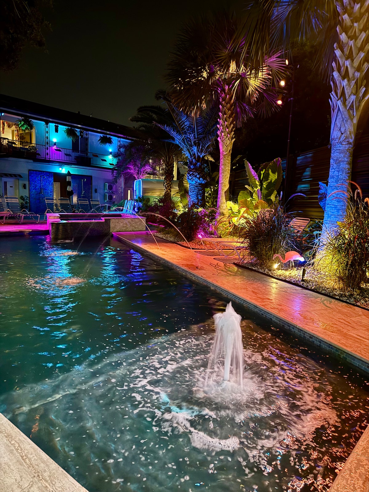 Unique Vintage Tiki Experience • Queen Bed • Fast Wifi • Tropical Garden with Hot Tub • Vintage Record Player • Bumper Pool • Kitchenette Indulge and relax in the ultimate Tiki experience within this charming hideaway, cocooned within the verdant tropical garden of a historic Uptown residence. Craft your own Mai Tai at the bamboo bar in your personal cocktail lounge and savor it while listening to retro music on the vintage record player.