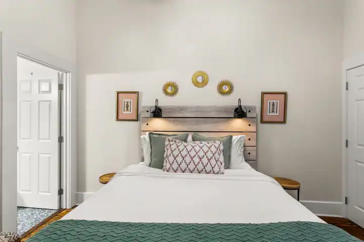 Soak up Victorian historic charm w all of the modern updates in this spacious HGTV renovation as seen on TV show New Orleans Reno. The Bywater Beauty on Louisa Street boasts a relaxing large front porch, free street parking day & night, chic interior w 12.5” ceilings, living room pocket doors for additional room privacy, SMART TV, eat-in kitchen w oversized marble island, 1 luxury QUEEN Simmons mattress sold by the Four Seasons Hotel w Hotel Collection & Ralph Lauren bedding, 1 QUEEN & 1 TWIN air mattresses, stylish en-suite bathroom w shower & toiletries, central AC/heat w a ceiling fan in primary bedroom, & an Alarm system. Guests say the rental is even more stunning in person & the host is quick to respond! Licenses #23-NSTR-13400 & #24-OSTR-03209. Bywater is NOLA's most sought after hip & historic neighborhood that offers its own world-class restaurants, bars, riverfront park, along with creative neighbors! It provides a respite from the French Quarter and Frenchmen Street that are both less than 1 mile away.