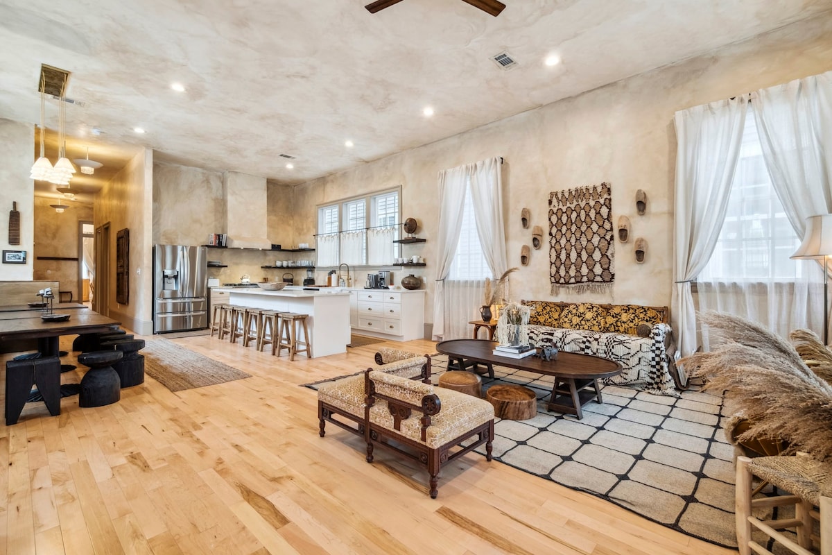 明亮的波西米亚风格房源,带恒温泳池/热水浴缸