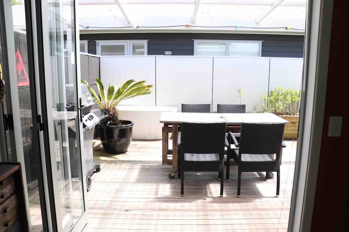 Spacious private getaway in a central location in New Plymouth. Two minutes walk from the Base hospital at the end of the street.15 minute stroll to the seafront walkway. 30 minute stroll to the CBD. Excellent for any boating activities with the port just 5 minutes away. It is close to the city centre, sports facilities and the boat ramp. Close to bowling clubs and a short stroll to local cafés, bars and restaurants. Off street parking is available at the door. Private check in.