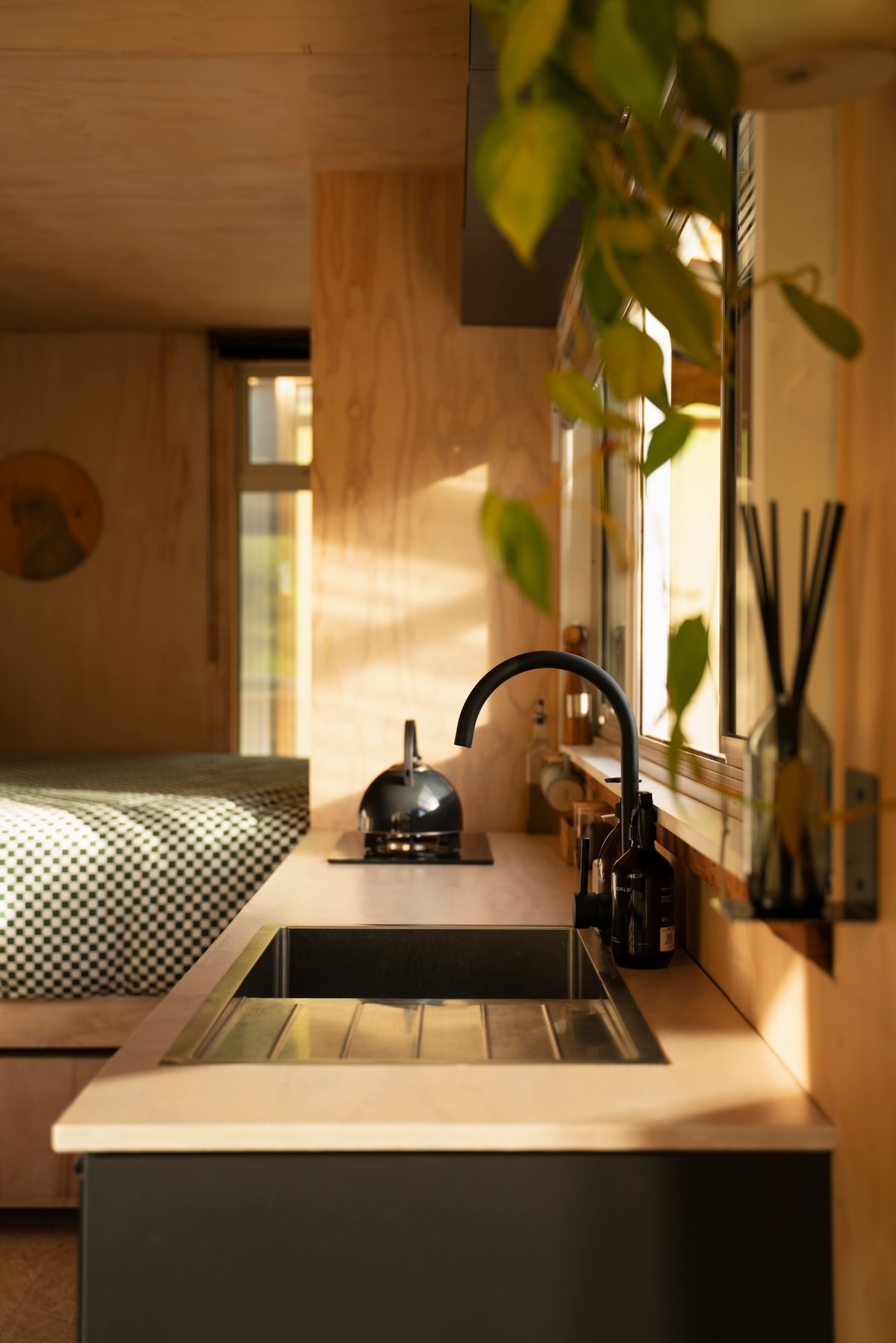 An off grid digital detox. Light the brazier, toast some marshmallows, run an outdoor bath under the stars & pour a glass of wine or a hot drink. Read a book, play a game of cards, chess or a word find it’s time to rest & recharge! Wake up in a comfy king bed & make a fresh brew of people’s coffee in the areopress. The cabin is located on our urban rural section tucked down in a peaceful valley next to our pole shed. Come & enjoy a weekend away to just be still & slow down for a wee bit. 🖤