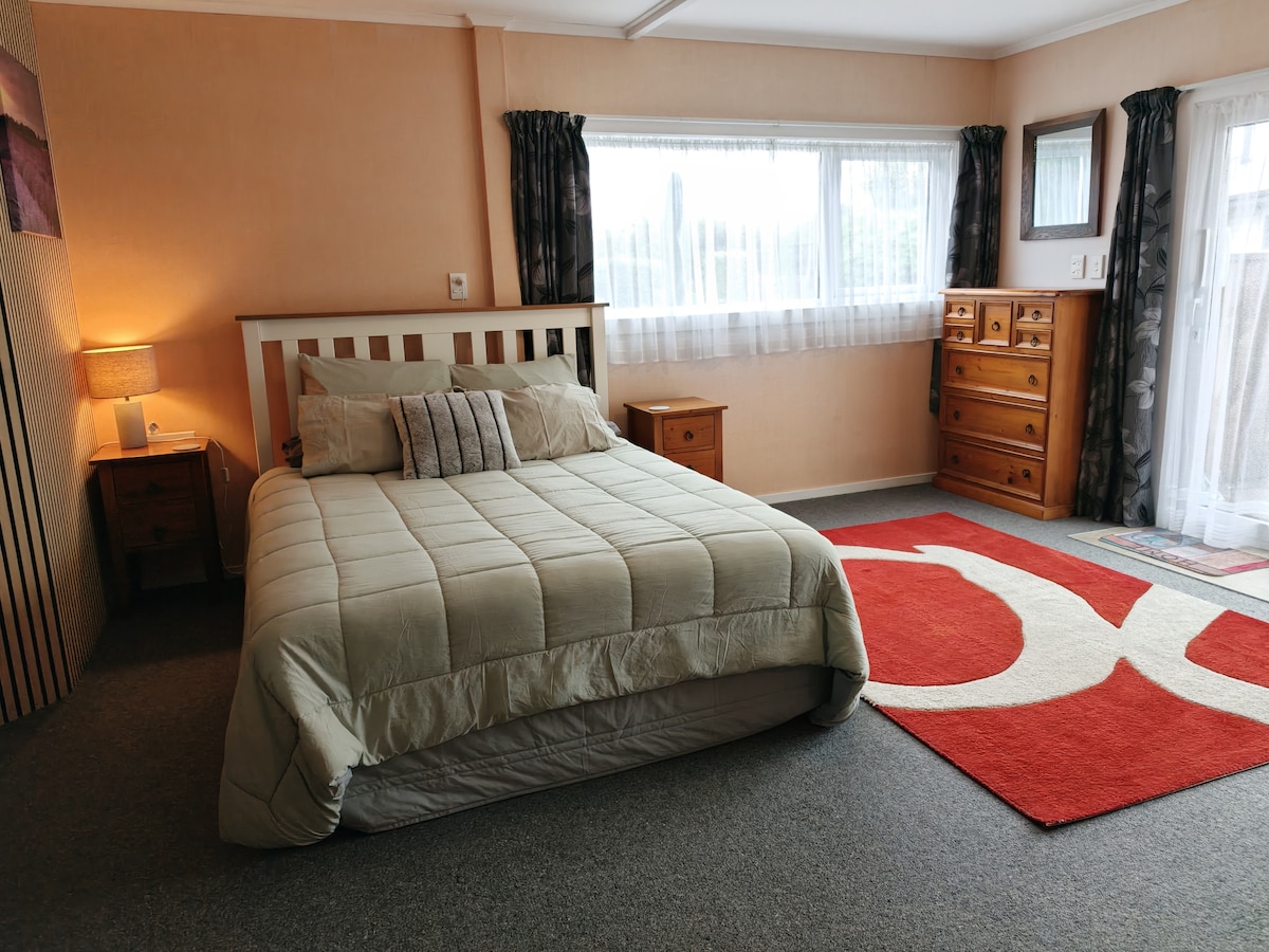 We are situated close to main routes in Taranaki but in a small town only 15 minutes from New Plymouth. WE PROVIDE CONTINENTAL BFREAKFAST; cereal, bread for toast, spreads, butter, milk and tea & coffee,. You will need to have your own transport when staying with us as public transport is almost non-existent with only 2 buses a day. We have offroad parking. There are a lot of activities available to you including walking tracks, surfing, cycling & beautiful parks to explore.