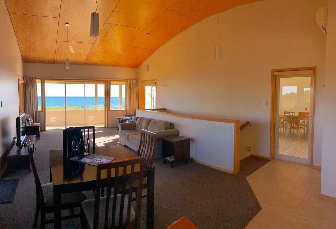 Providing one of the most tranquil places to stay in Taranaki Okurukuru is situated on Taranaki’s spectacular coastline, overlooking Paratutu rock and the Sugarloaf Islands on one side with a clear sight of our majestic Mount Taranaki on the other. The chalets are nestled into the hill above the coast, surrounded by vines and farmland. Each chalet has a balcony to watch the waves roll in.