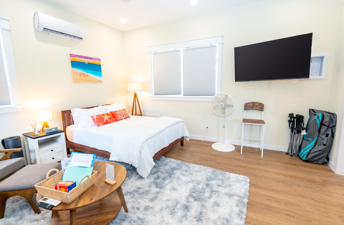 Secluded one bedroom apartment. Includes: self check-in, free parking, fully equipped kitchen, and laundry amenities. Unit has its own Wi-Fi with smart TV's in the living room and bedroom. Perfect for those transiting the Island, seeking somewhere comfortable to stay.