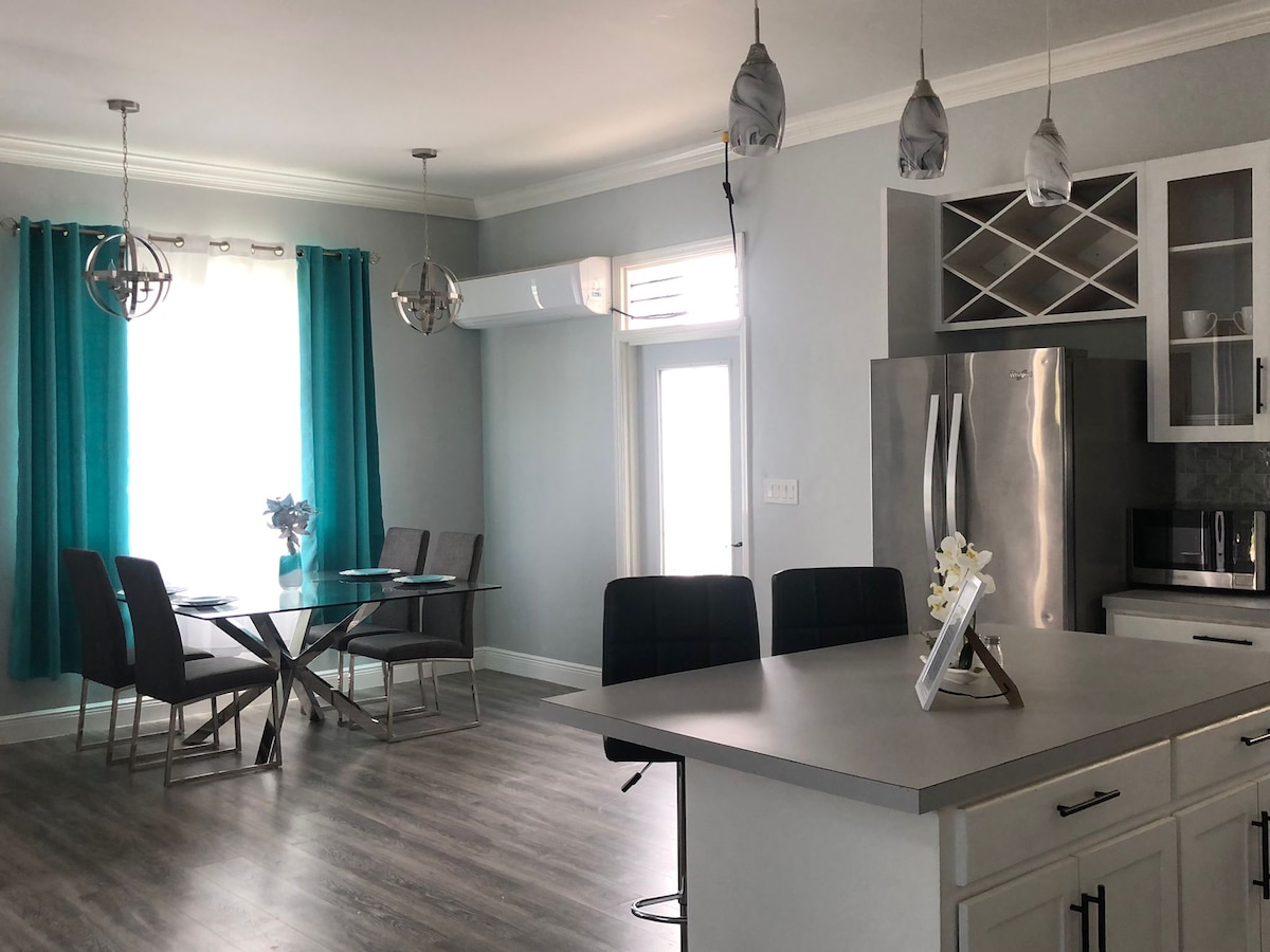 The Blue Oasis is a spacious one bedroom apartment located 3 mins from the airport and 2 mins from one of the beautiful beaches in The Bahamas. This beautiful spot is in a quiet and safe neighbourhood. Excellent space for 4 with one queen bed and one queen pull out sofa. The apartment offers air-conditioning, free WIFI, smart TVs, cable TV, standby generator and fully-equipped kitchen for your home-away-from home needs. Major supermarkets, restaurants and gym within 5 to 10 mins driving.