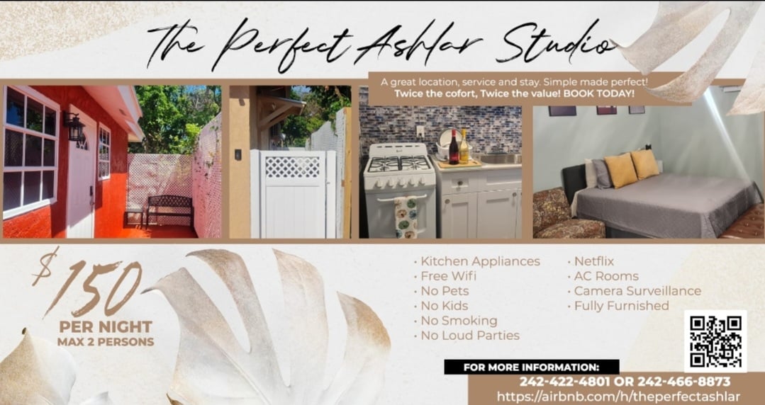 Discover our cozy 1 bedroom home in serene western New Providence. Your comfortable retreat for a perfect Bahamian getaway. After a day of island adventures, return to this warm & inviting space, fully equipped for your stay. Venture out to explore the vibrant surrounding area. Lounge on pristine beaches, stroll through the “Fish Fry”, shop at bustling plazas, or explore fine dining at diverse restaurants. With conveniences nearby, you’ll have what you need at our delightful home away from home.