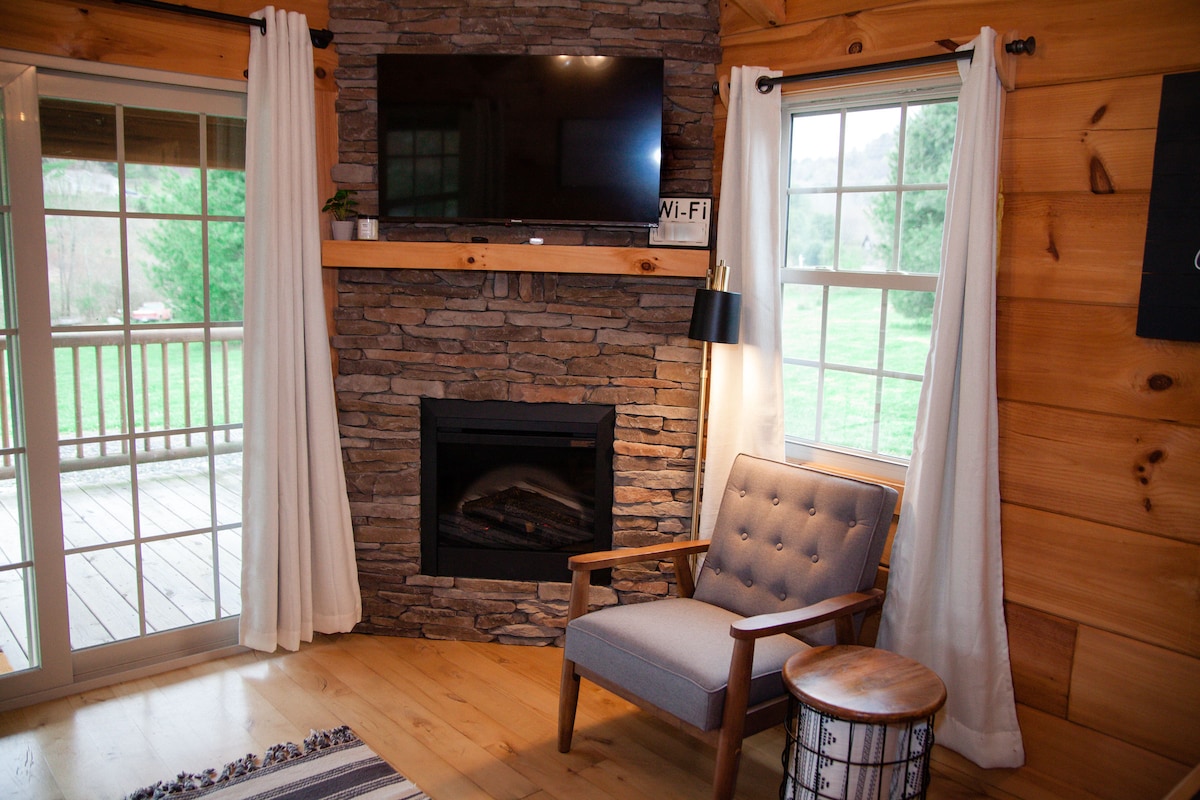 Rumple's Retreat is a cozy 2-story log cabin with an open loft with 2 queen beds. The property is minutes from Grayson Highlands State Park and all its attractions, 2 mi. to the entrance. Bring your quarters for the arcade full of retro classics! Outdoor private drive-in theater with a new movie every night! Relax by the campfire or fish the stocked Wilson Creek on the property. -Free to use kayaks, and canoes -High Speed WiFi across property -Pets allowed -3 vehicle limit