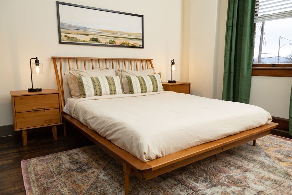 *NOW WITH FREE ON-SITE PARKING!* Welcome to our charming, historic, and newly renovated one-bedroom ground floor apartment nestled in the heart of downtown Roanoke, Virginia. This exquisite property is a stone's throw away from a plethora of local breweries and restaurants, making it an ideal location for foodies and craft beer enthusiasts alike. It is fully equipped for a quick overnight business trip or a long term stay. The unit comfortably sleeps 4 with a king size bed and sleeper sofa.