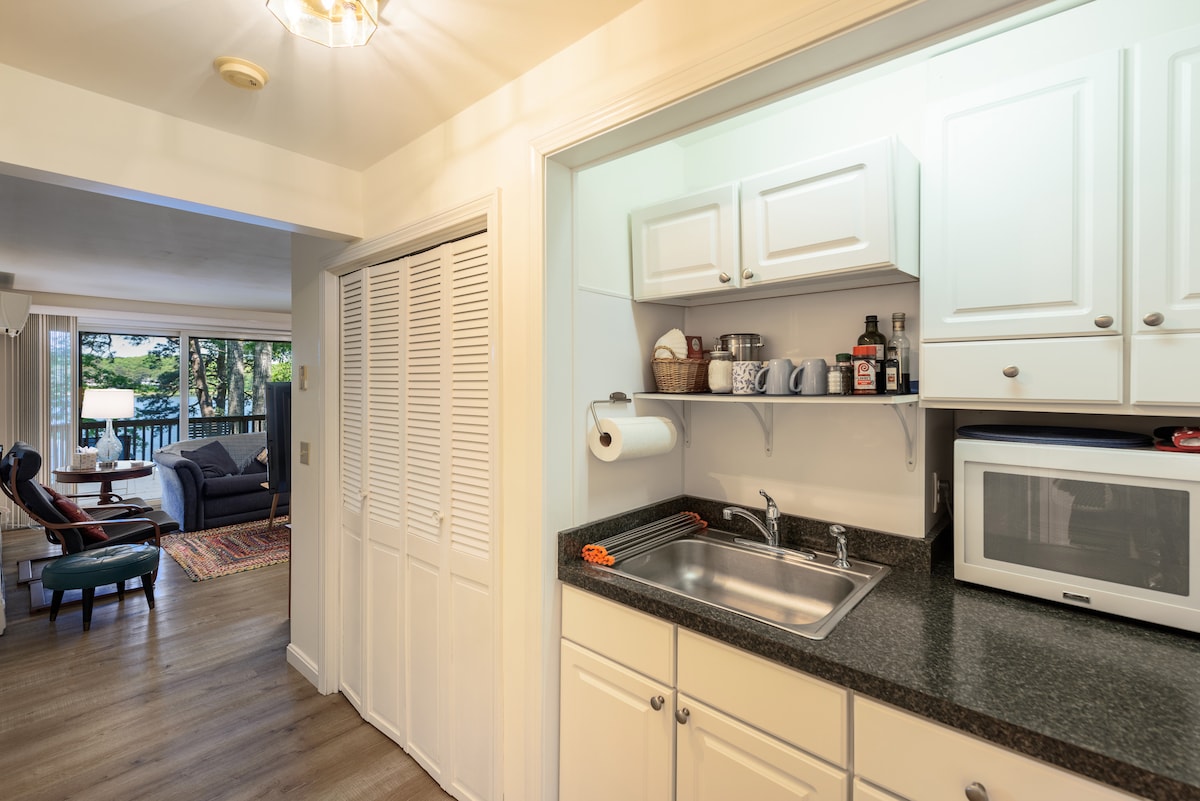 Located in the Quaint village of North Falmouth, yet close to beaches, this one-bedroom Apartment is a great place to relax. It has a tiled walk-in shower and heated floor in the bathroom. The kitchen includes a microwave, toaster oven, cook top stove, and a Keurig coffee maker. The pool is not heated and is open seasonally (July 1 - Labor Day) Very private location. Close to Old Silver Beach!