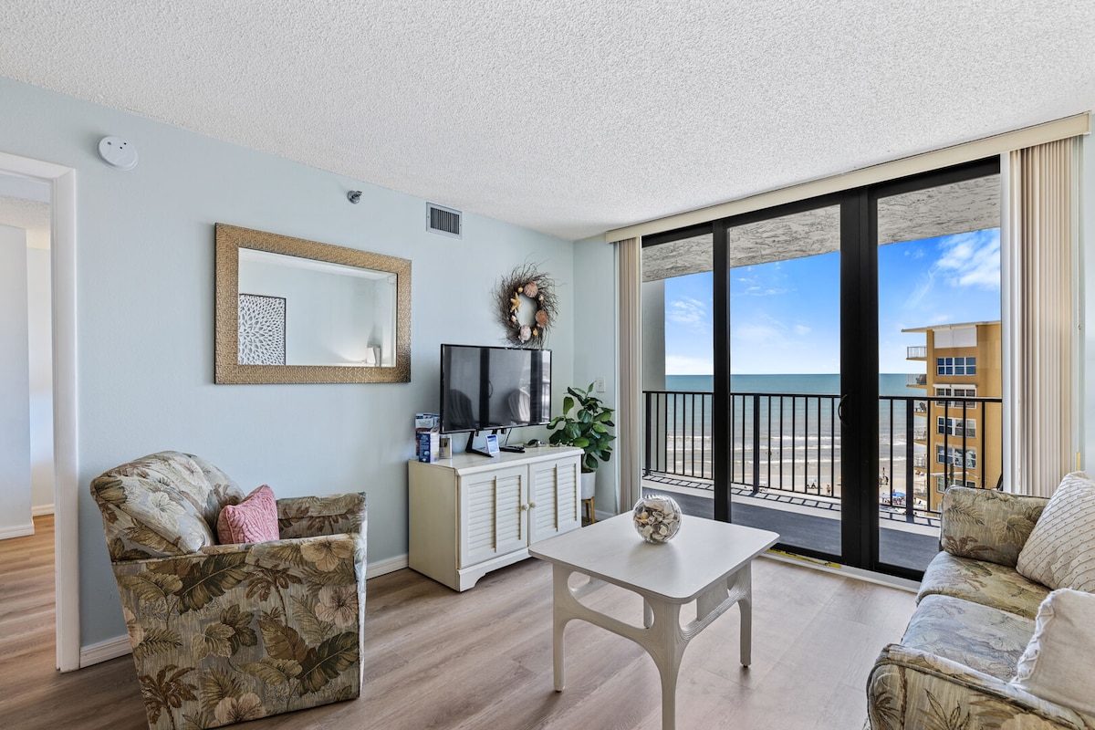 Ocean Trillium 701 Features: - Oceanfront location - Walk to shopping & dining - Walk to 27th Avenue Park with playground, racquetball & basketball courts - Secured Entry - Oceanfront pool & sun deck - 1 Bedroom (1 King, Sofa Sleeper) - 1 Bath - Ocean view balcony with outdoor seating - Fully equipped kitchen - Comfortable living room with smart TV - Wifi & Cable/satellite - Towels & linens - Washer & Dryer on site credit card operated