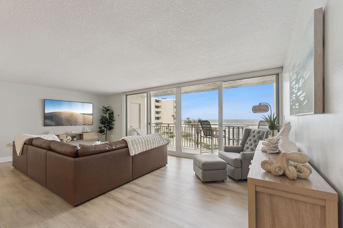 Wake up to ocean views and the sound of waves in this modern 2BR/2BA oceanfront condo at The Pelican. Newly renovated with quartz counters, new appliances, and 3 Smart TVs. Enjoy a plush king bed, bunk w/ trundle + twin, and private balcony with automated blinds. Steps from the sand, 2 beachfront pools, and just 1.5 miles from Flagler Ave shops and dining. Watch dolphins at sunrise and unwind with every coastal comfort provided. Pack light, this condo is kid-ready: pack n play, highchair, toys.