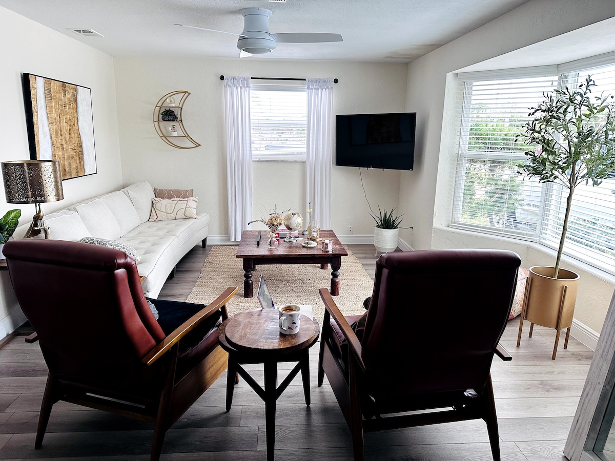 海滩上的迷人艺术单间公寓,带围栏庭院!