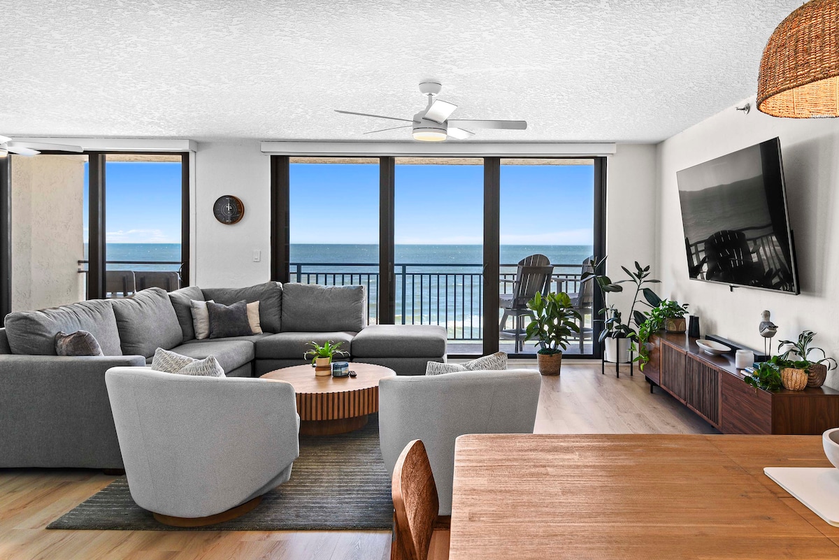🚧NOTE: Sand placement project has passed our complex. Beach access is open. Ask questions! ☀️Direct oceanfront 2 bed/2bath-Sleeps 5 ☀️Sweeping ocean views | Stunning sunrises ☀️Comfort, convenience and effortless layout ☀️ Expansive windows & abundant natural light ☀️Cooks kitchen | Family ready essentials ☀️High speed wifi | Smart TV | Streaming apps ☀️Remote workspace-business or school ready ☀️Blackout curtains/comfortable bedding ☀️Modern bathrooms>hotel style amenities