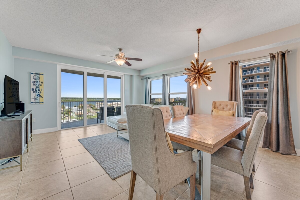 OUR POOL AND HOT TUB ARE OPEN!!! You deserve the BEST! Our building is the NEWEST beachfront residence in the Daytona area. Our luxury unit is meticulously appointed with modern décor. The wraparound balcony provides both river and ocean views, boasting spectacular sunsets. Amenities include WiFi, cable, gym, free parking, washer/dryer in unit, and more!
