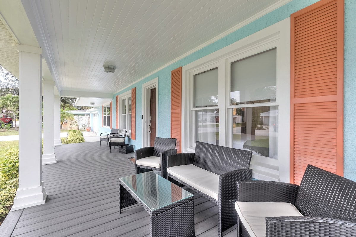Enjoy coastal breezes, kick back & relax at this cool Craftsman cottage w/views of Halifax River. Take a morning sunrise walk or watch a space launch along the riverfront! Beautiful outdoor spaces to chill. We are 1.5 blocks from Estate on the Halifax Wedding venue, 10 min to beaches & tons of great restaurants. Daytona Int’l Speedway, Bike Week festivities & local colleges-15 minutes away. Room for bike trailers! Please see Maureen’s guest book on my profile for restaurants and things to do🤩