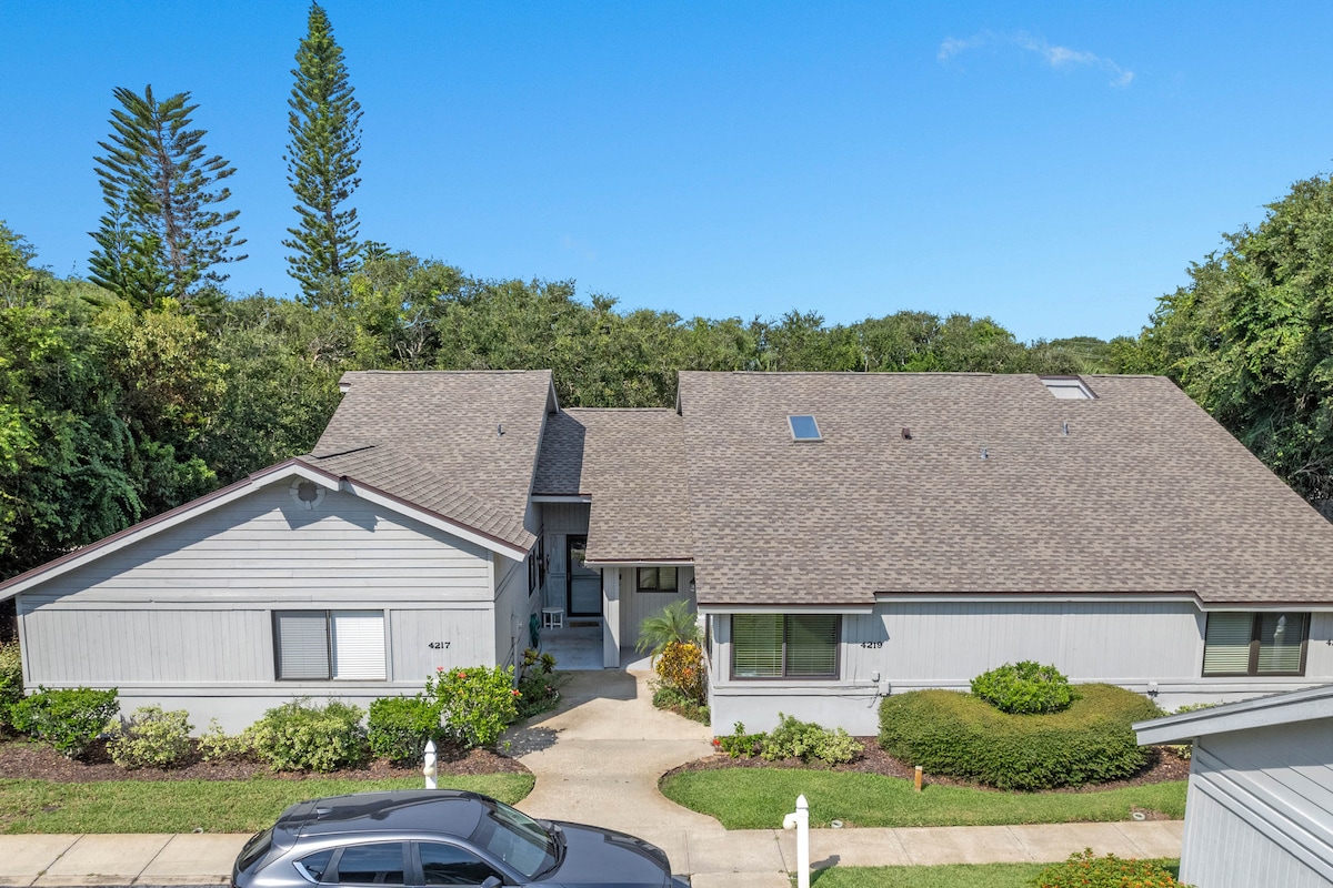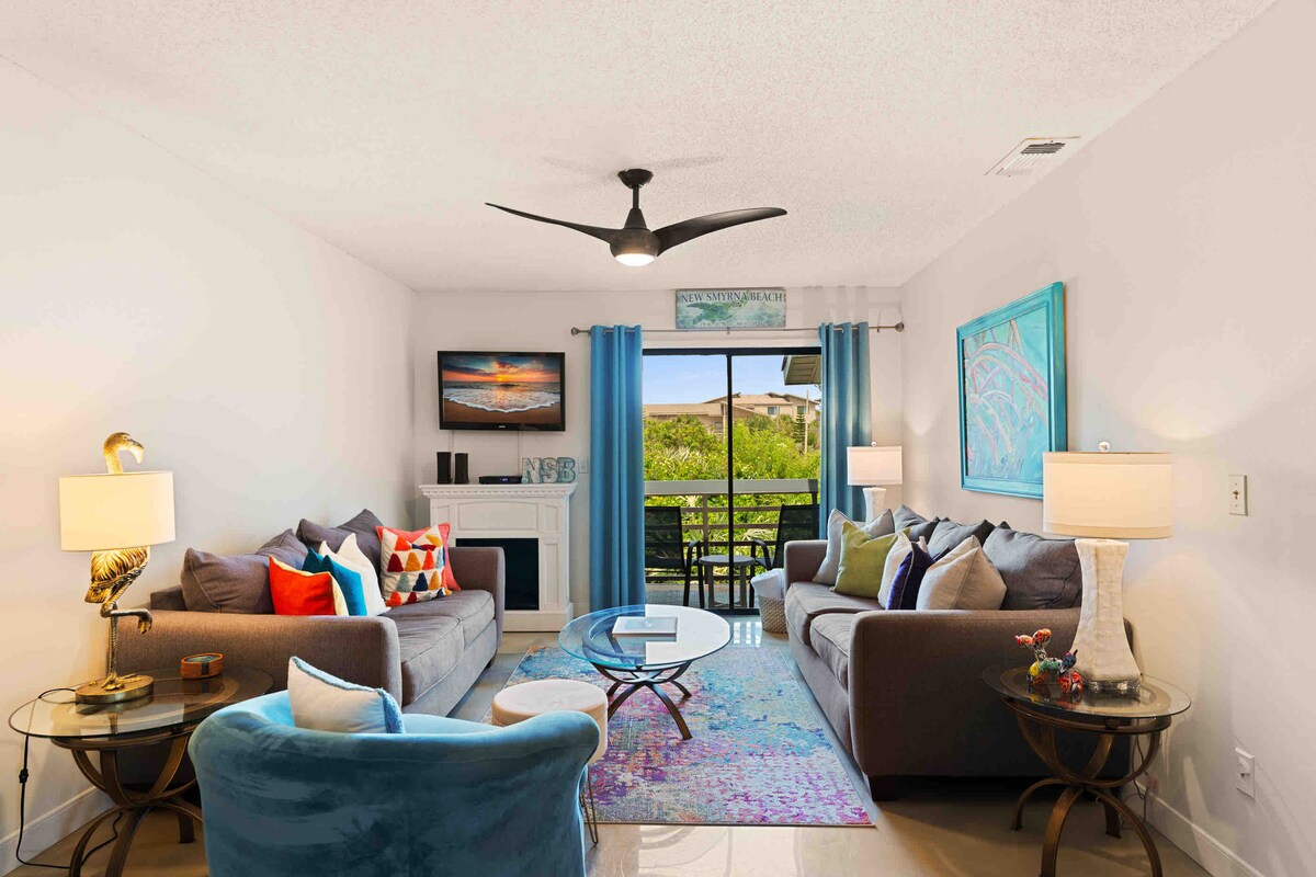 Step outside and immerse yourself in the ocean or a pool in minutes! Escape for days or weeks to this lovely renovated home, just a short stroll to pristine, no-drive New Smyrna Beach. Nestled in a resort-like setting, our condo features modern amenities and cozy comforts for an ultra relaxing stay. We provide towels, chairs, and all beach essentials for your seaside adventure. The huge enclosed veranda is perfect for lounging and dining in privacy. Visit this oasis to relax, refresh and renew!
