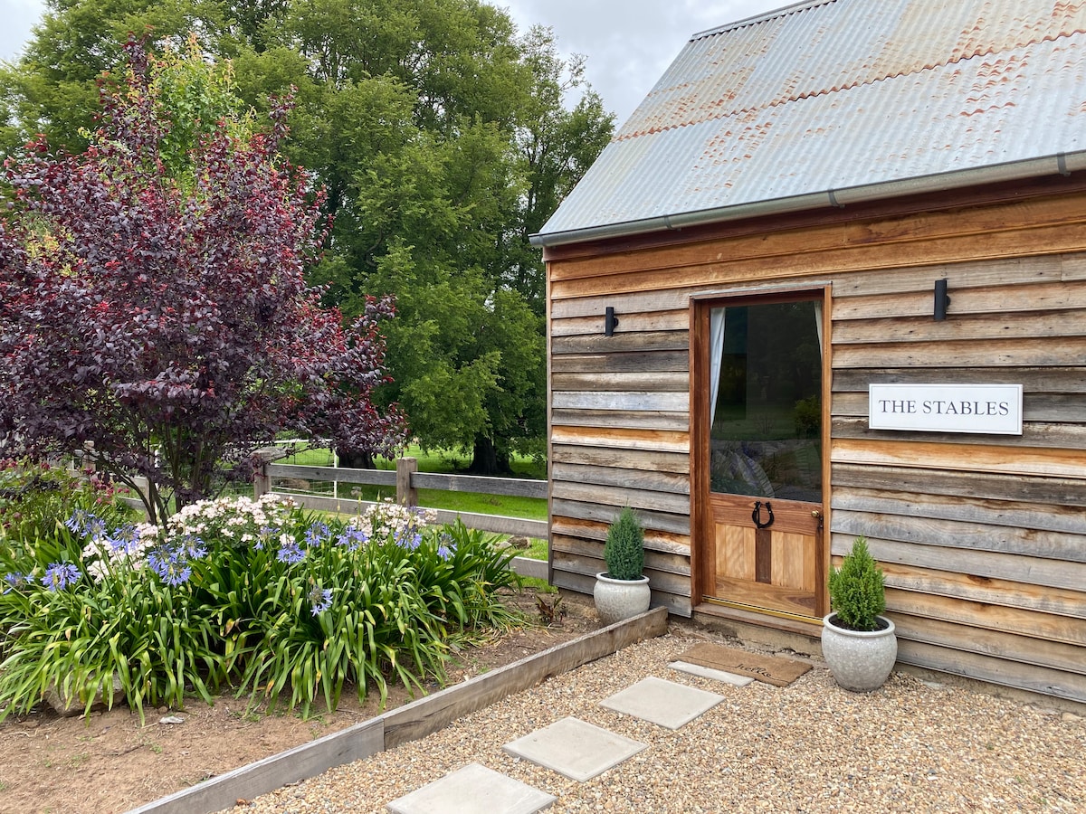 The original stables at historic Longsight have been lovingly restored and converted to luxury boutique accommodation. Many of the original features have been preserved such as the exposed wood rafters, weatherboards, iron roof and facade. Even the original saddle racks remain in the bathroom and old framing timber has been repurposed into a beautiful kitchen island. Perfect for couples or families looking for a relaxing country getaway.