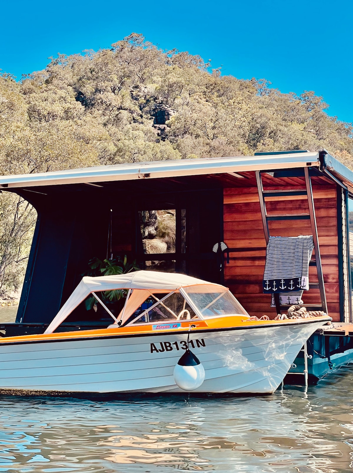 Your own Private Island awaits. A 1970s houseboat dream that floats amongst the quiet Bushlands and rivers of the Dharug nation. A unique place to dream, be inspired and at peace. Laze in the hammock by day, gaze at the stars from your bed at night - see the latest @ _oh_buoy Included in your stay is a motor boat, double kayak & paddle board. A fully stocked pantry, fishing tackle and rods, champagne on arrival and much more 🧡