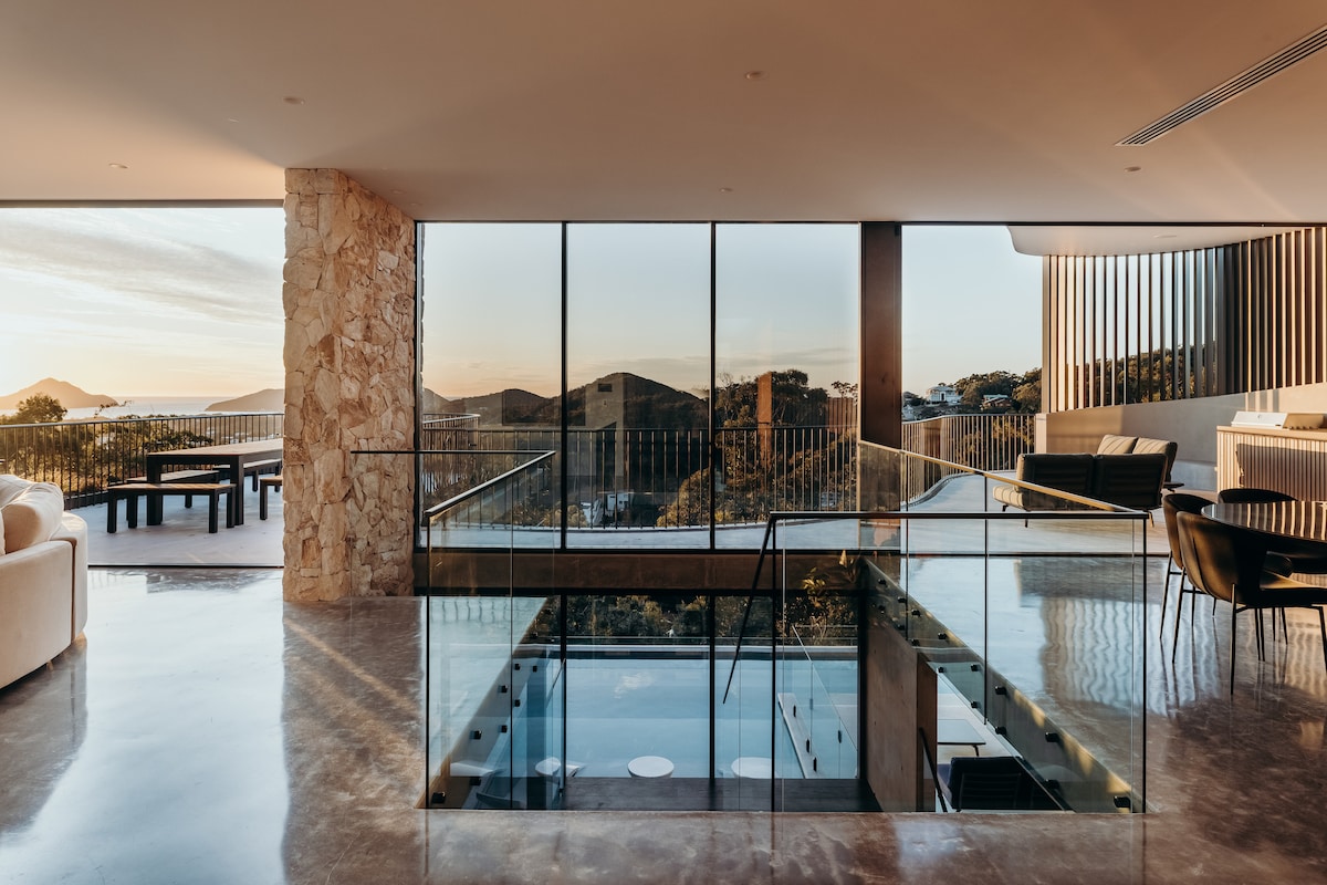 Feel the warmth from the crackling fire while you gaze out over the moonlit ocean at this modern farmhouse in Gerringong. Situated 5-minutes from town, and just over an hour from Sydney, this coastal villa enjoys complete seclusion. Wander the on-site trails, explore 200 acres of rainforest, and meet grazing livestock on your way. Follow the coastal walking track, and you’ll be in town in no time.