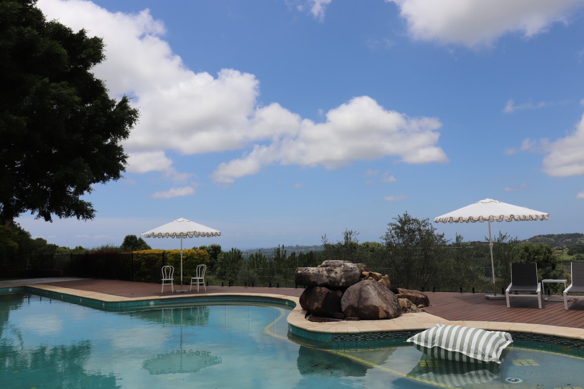 This architect-designed Lodge is located in one of the most beautiful settings imaginable Designed for privacy on 32 acres of pristine country, next to National Parkland and minutes from award winning beaches. This unique destination perfectly blends a peaceful countryside and beach holiday. Enjoy it in comfort and privacy with your family and friends. Imagine sitting on your own private verandah watching the sun set with views of the Pacific and stunning Mount Dromedary (Gulaga).